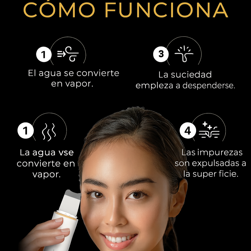 ✔️ Exfoliación ultrasónica suave para una piel más lisa, uniforme y luminosa.